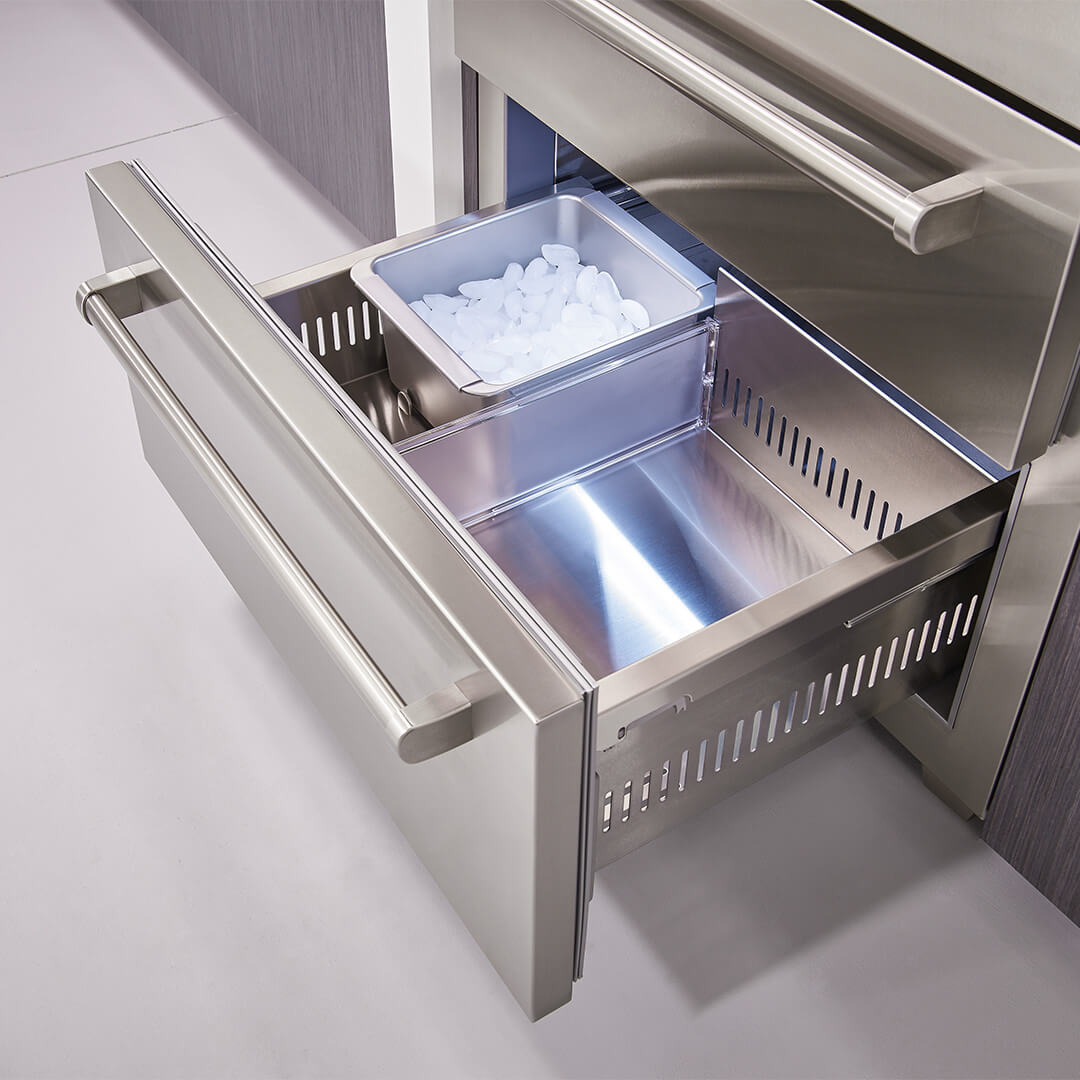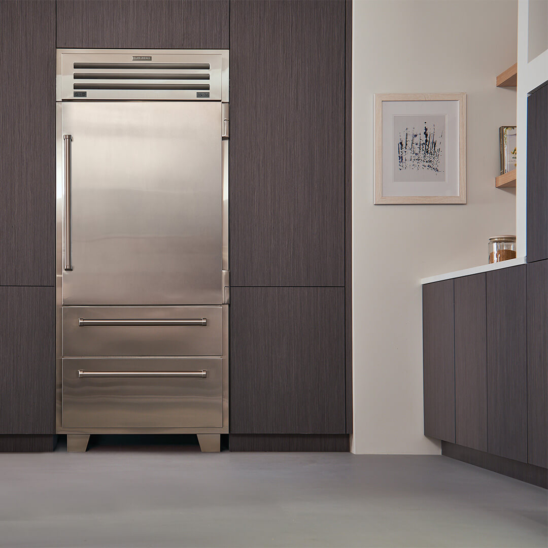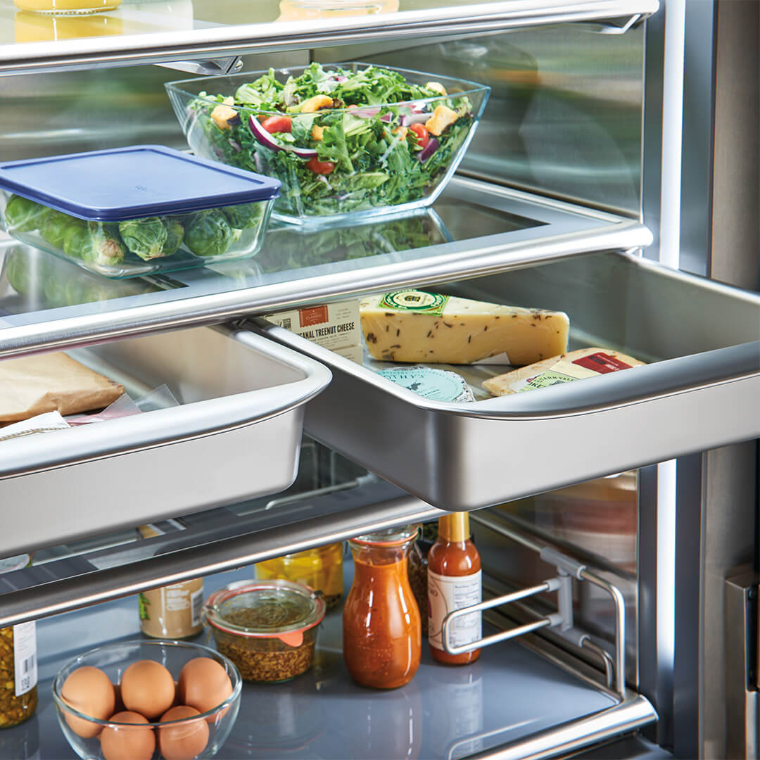 Jedyną rzeczą bardziej imponującą niż odważny wygląd zewnętrzny jest przełomowa technologia i wzornictwo, które można znaleźć wewnątrz nowej serii PRO. Luksusowy wygląd PRO jest teraz dostępny w mniejszej szerokości 91 cm, zapewniając nowe możliwości projektowania zarówno dla małych, jak i dużych kuchni. Wyposażona w najbardziej zaawansowany system konserwacji, nowa lodówka PRO 36 nadal spełnia naszą obietnicę dłuższego utrzymywania świeżości żywności.