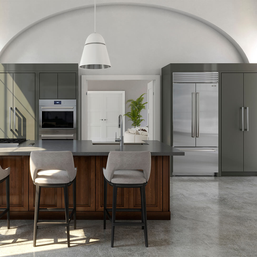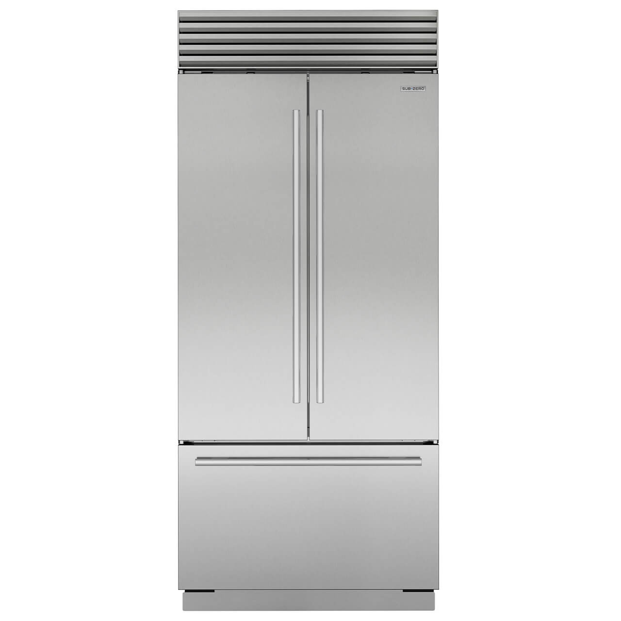 Chłodziarko-zamrażarki typu French Door Sub-Zero wyróżniają się odważnym, stylowym wyglądem. Dzięki symetrycznym, dzielonym drzwiom części chłodziarki pozwalają na wygodny dostęp do wnętrza. Zamrażarka z automatyczną kostkarką mieści się w wysuwanej szufladzie na dole urządzenia. Jest to jedna z najczęściej wybieranych konfiguracji modeli serii Classic.