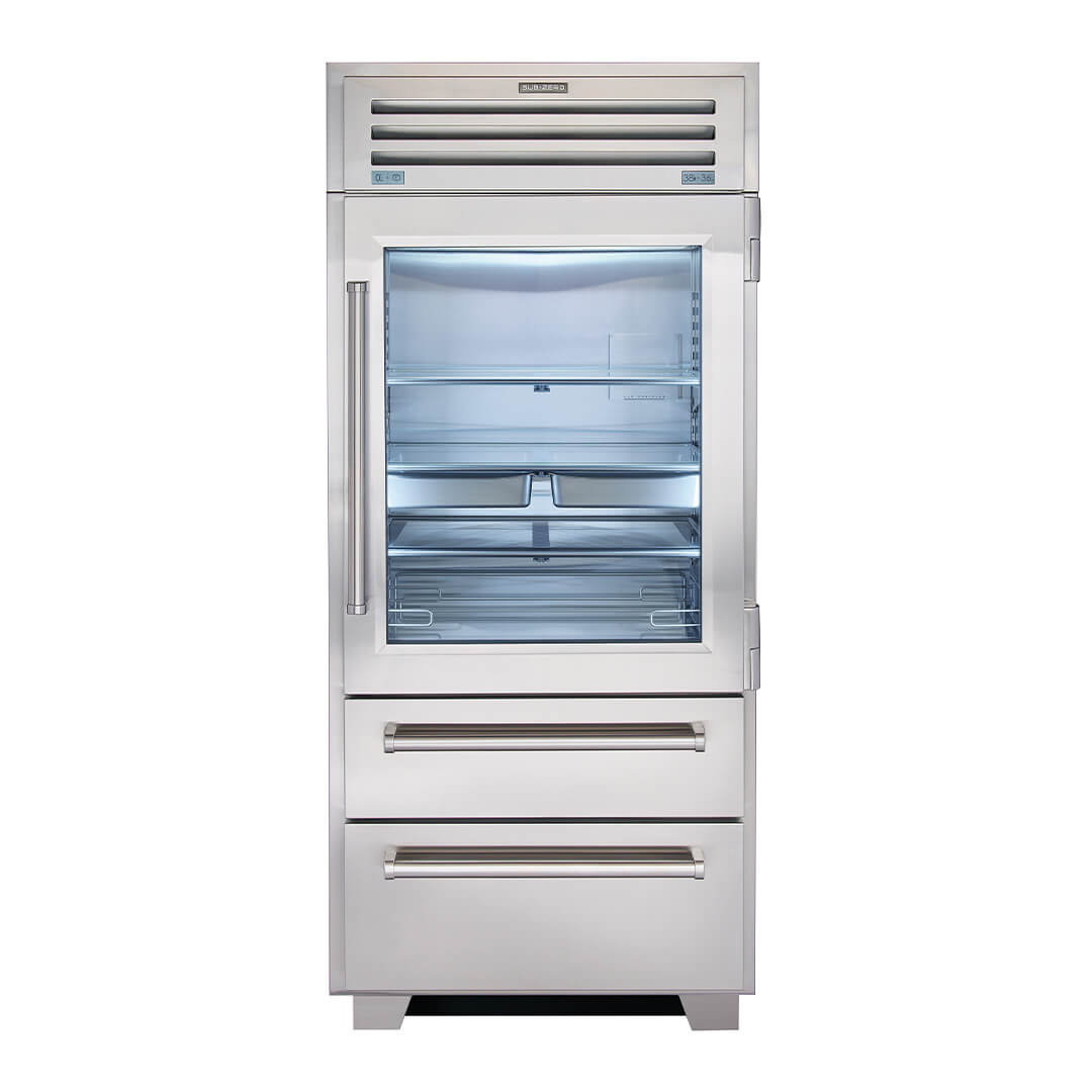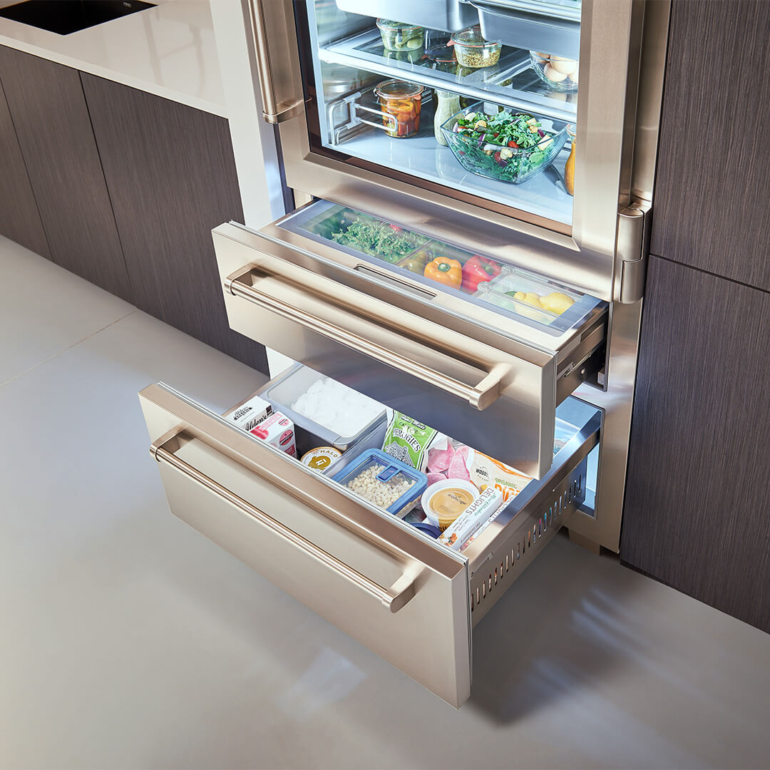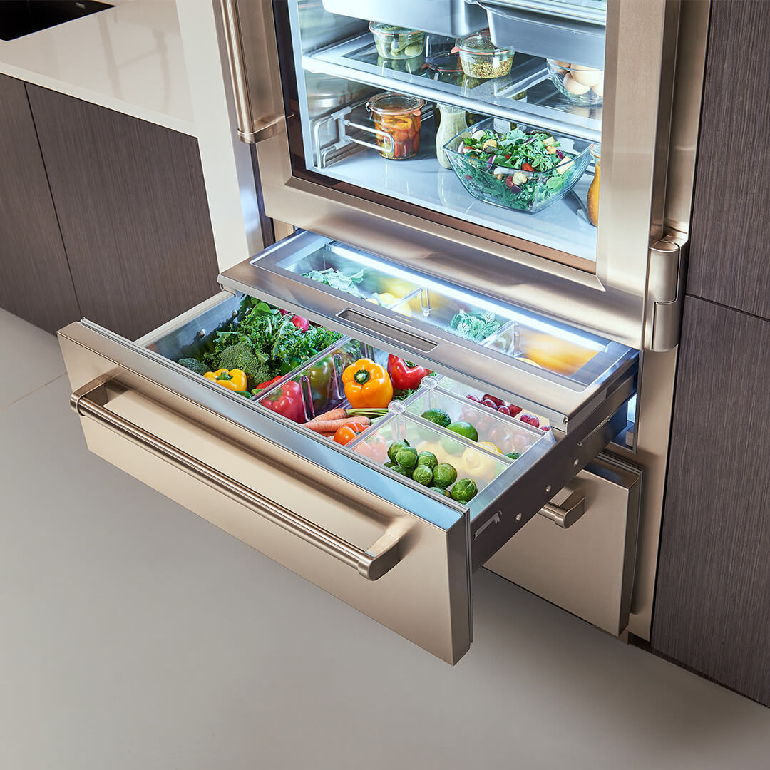 Jedyną rzeczą bardziej imponującą niż odważny wygląd zewnętrzny jest przełomowa technologia i wzornictwo, które można znaleźć wewnątrz nowej serii PRO. Luksusowy wygląd PRO jest teraz dostępny w mniejszej szerokości 91 cm, zapewniając nowe możliwości projektowania zarówno dla małych, jak i dużych kuchni. Wyposażona w najbardziej zaawansowany system konserwacji, nowa lodówka PRO 36 nadal spełnia naszą obietnicę dłuższego utrzymywania świeżości żywności.