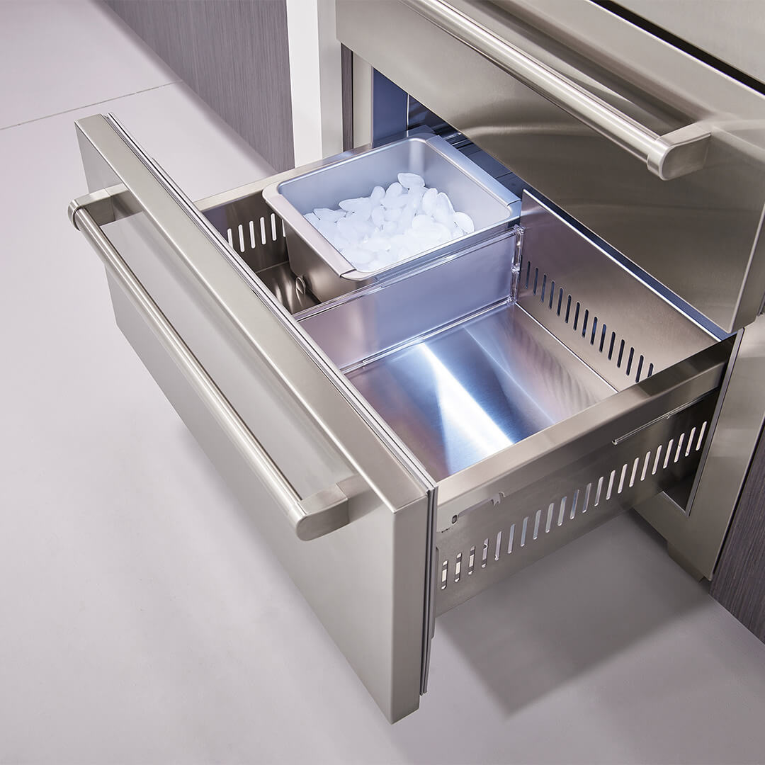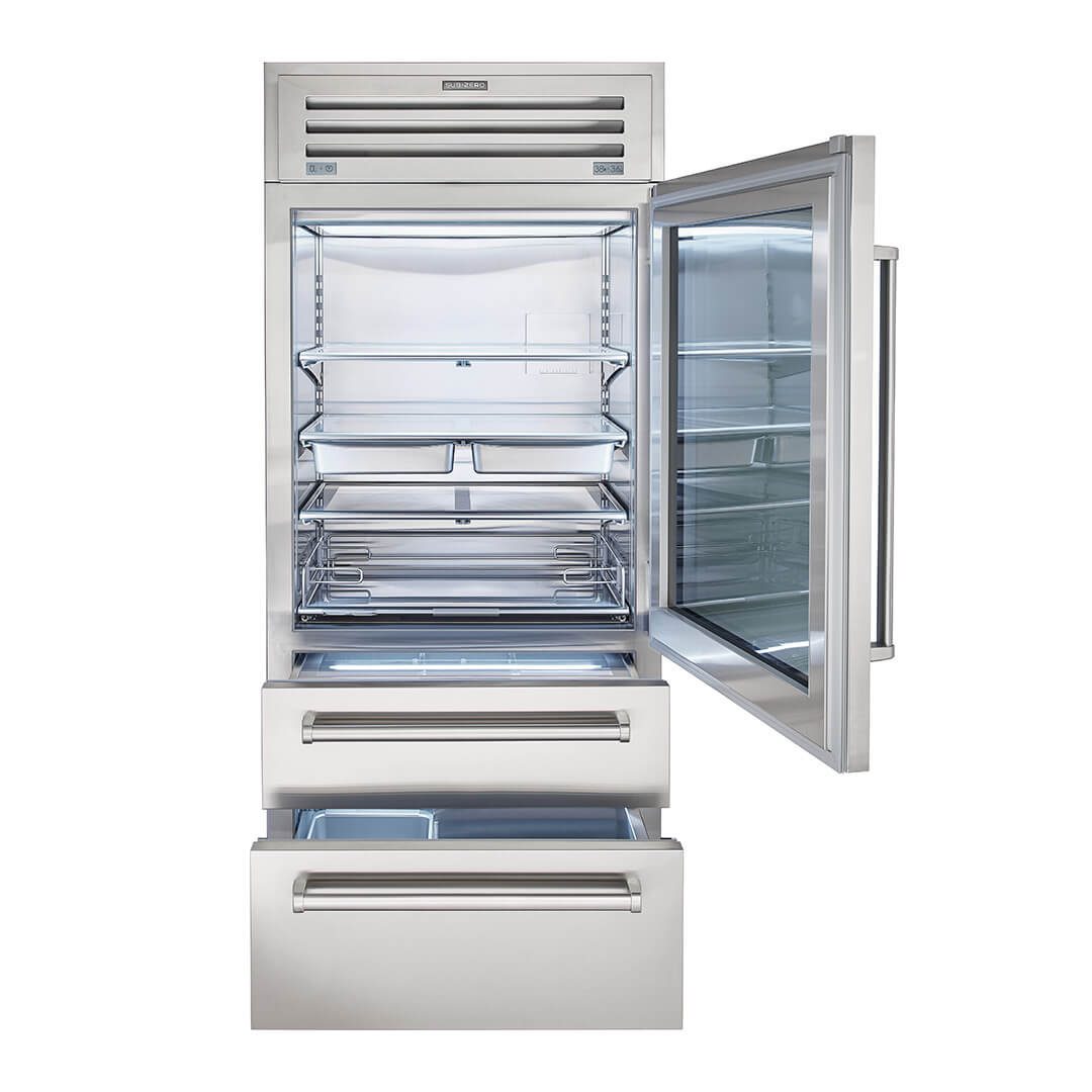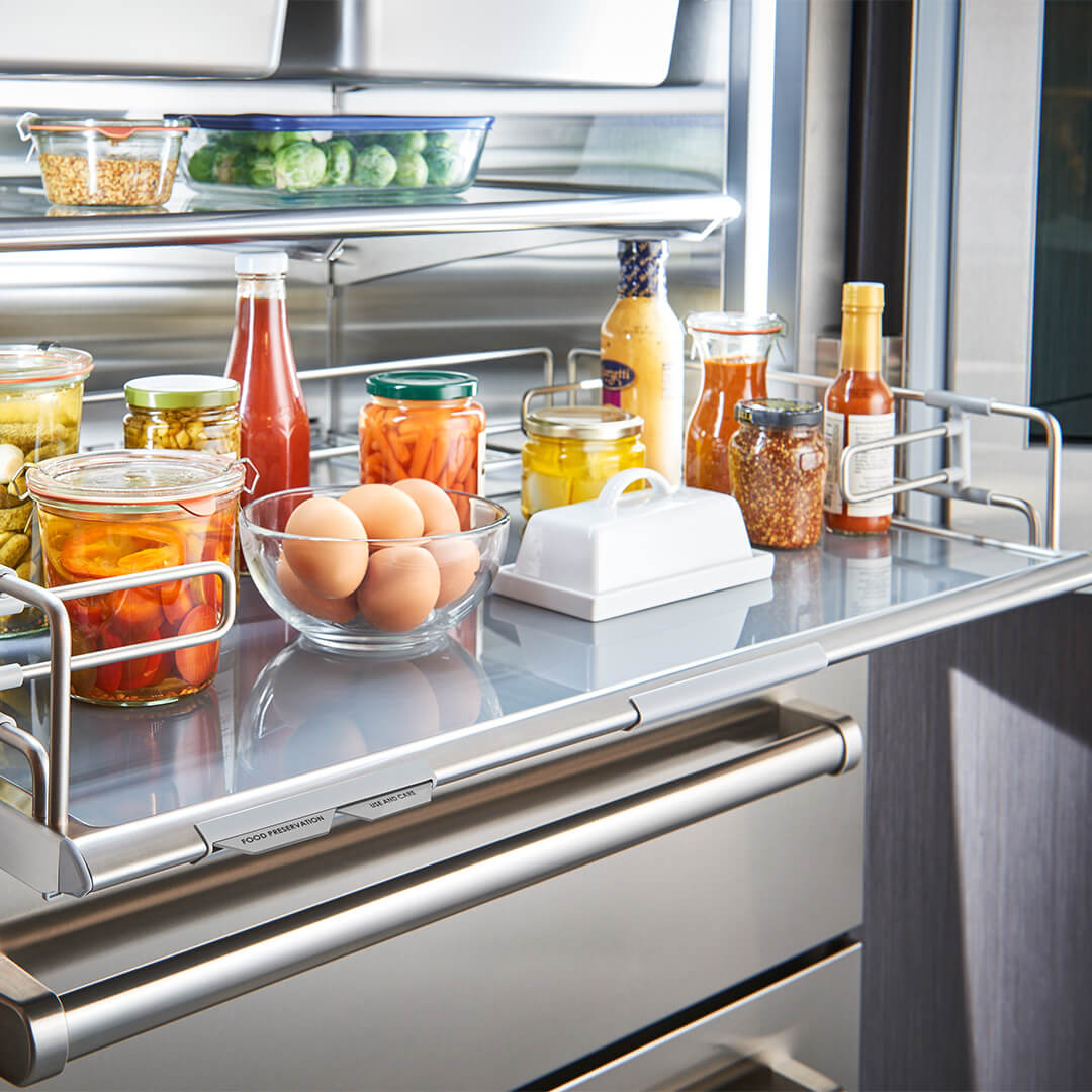 Jedyną rzeczą bardziej imponującą niż odważny wygląd zewnętrzny jest przełomowa technologia i wzornictwo, które można znaleźć wewnątrz nowej serii PRO. Luksusowy wygląd PRO jest teraz dostępny w mniejszej szerokości 91 cm, zapewniając nowe możliwości projektowania zarówno dla małych, jak i dużych kuchni. Wyposażona w najbardziej zaawansowany system konserwacji, nowa lodówka PRO 36 nadal spełnia naszą obietnicę dłuższego utrzymywania świeżości żywności.