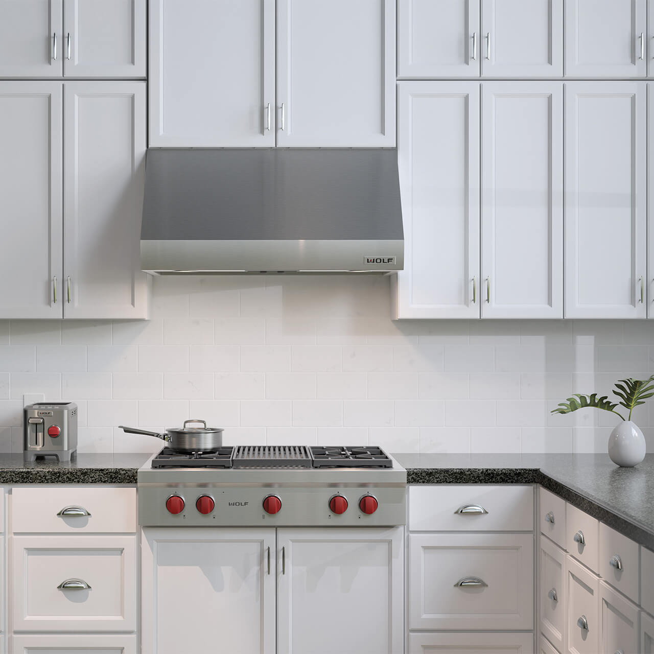 Spawane szwy, obszyte krawędzie, ręczne wykończenie. A wszystko to z wytrzymałej, szczotkowanej stali nierdzewnej. Czy nazwanie okapu Wolf Pro Wall Hood pięknym byłoby przesadą? Naszym zdaniem nie. To ostateczny, kultowy akcent, który uzupełnia starannie zaprojektowaną, profesjonalną kuchnię. Za wyrzeźbionymi liniami kryje się niesamowita wydajność, która sprawi, że strefa gotowania będzie jasna, czysta i świeża, bez względu na to, co gotujesz.