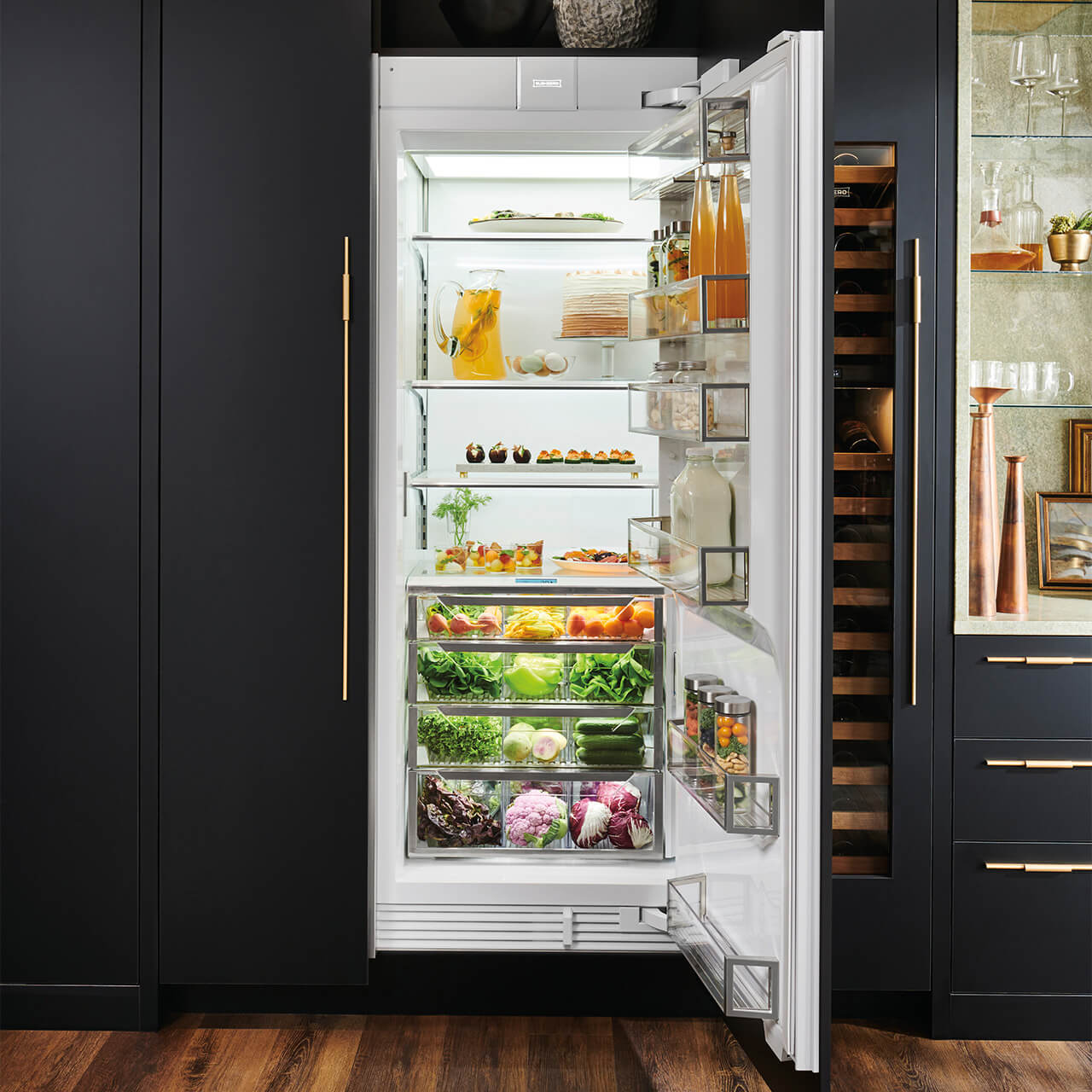 Ve většině kuchyní se chladnička používá častěji než jakýkoli jiný spotřebič. Je proto důležité, aby splňovala všechny potřeby domácnosti – nyní i v budoucnu. Designová chladnička Sub-Zero o šířce 76 cm poskytuje působivou úložnou kapacitu. Zkombinujte ji s mrazákem a budete mít po ruce chutné jídlo bez ohledu na to, jak velká je vaše rodina nebo jak často přijímáte hosty.