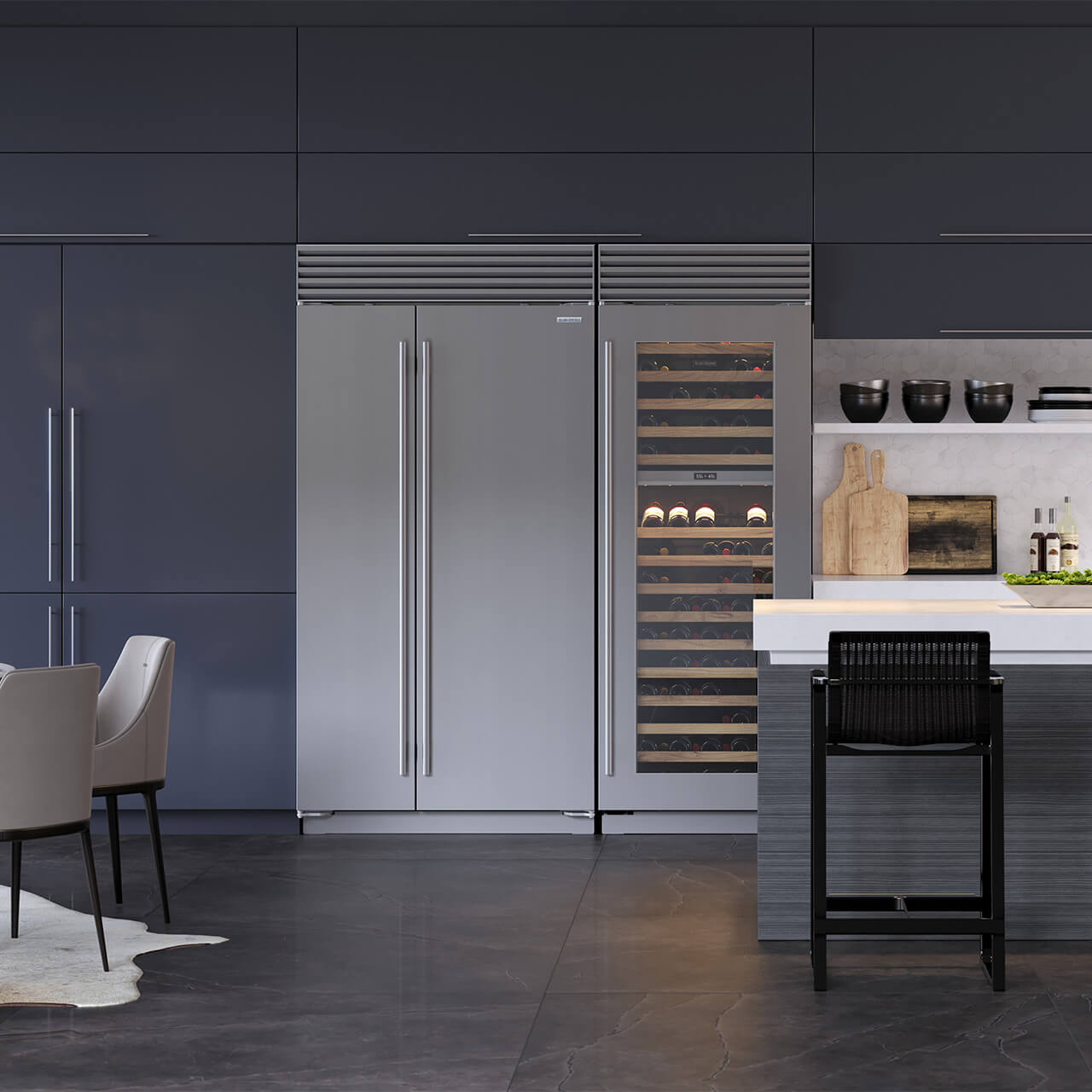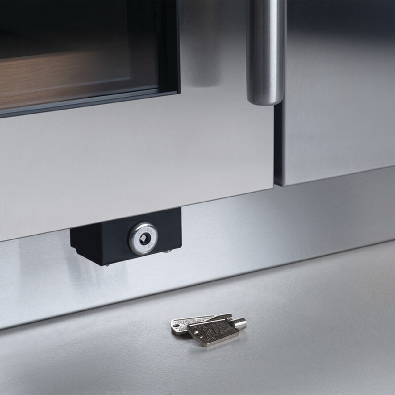 - Pro krycí panel dveří z nerez oceli jsou připraveny madla Tubular a Pro tak, aby bylo možné sjednotit design s ostatními spotřebiči Sub-Zero a Wolf