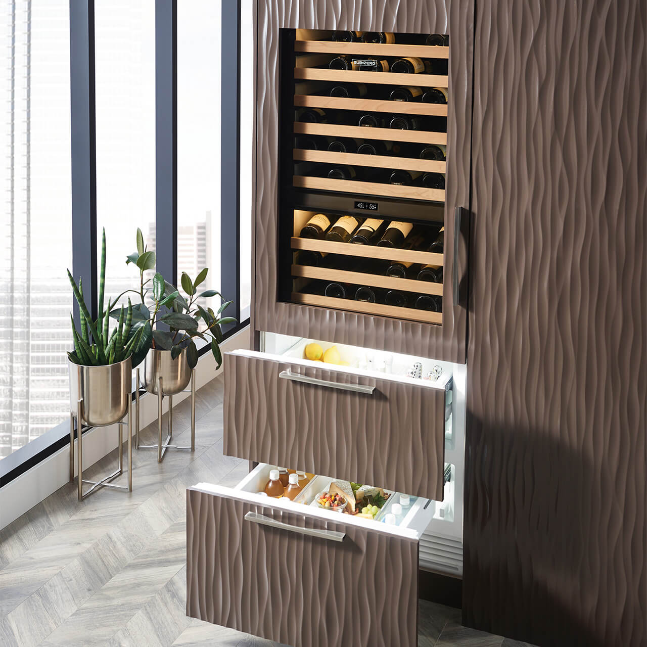 - Pro krycí panely dveří a výsuvů z nerez oceli jsou připraveny madla Tubular a Pro tak, aby bylo možné sjednotit design s ostatními spotřebiči Sub-Zero a Wolf