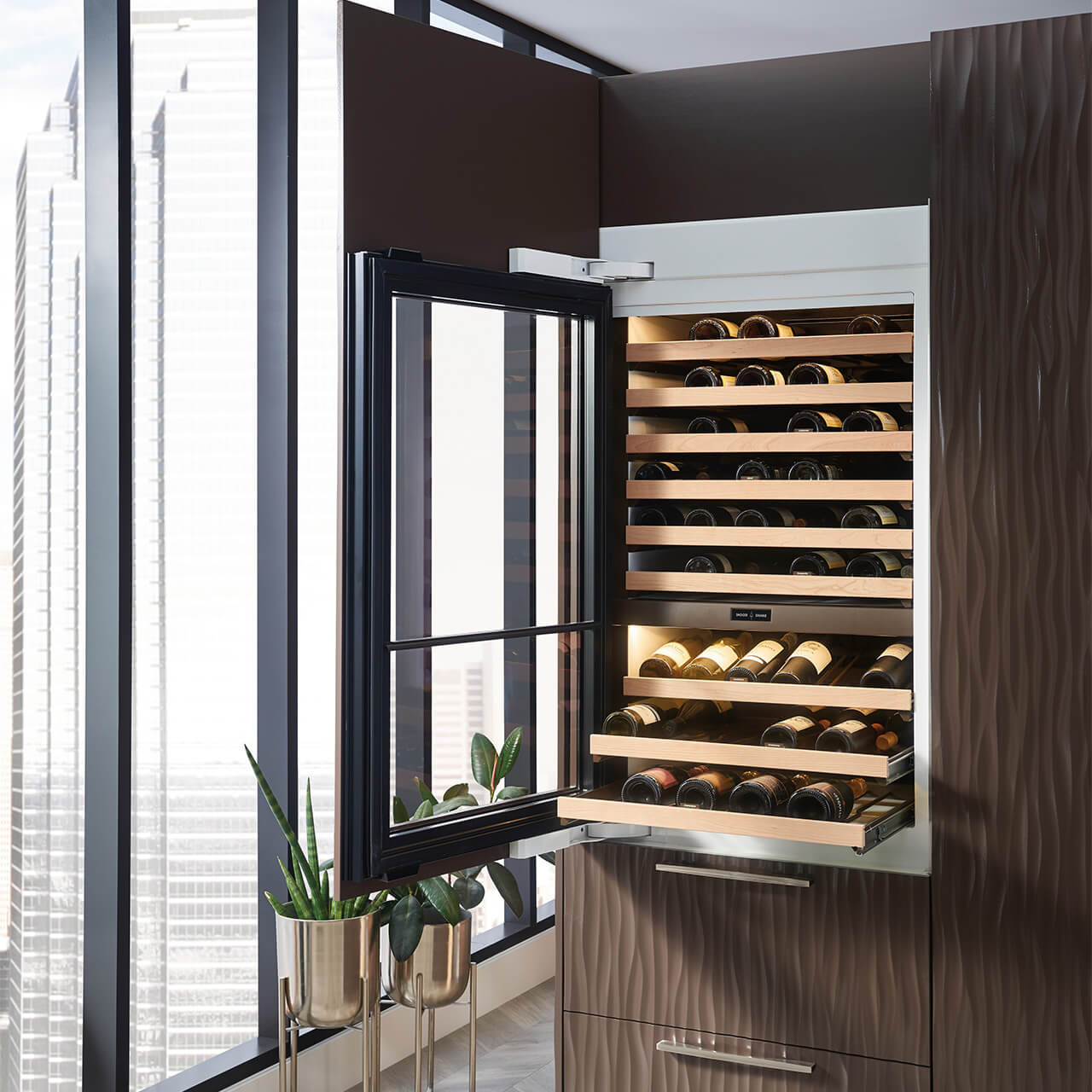 - Prosklené dveře nepropustí UV záření a chrání tak lahve s vínem před znehodnocením