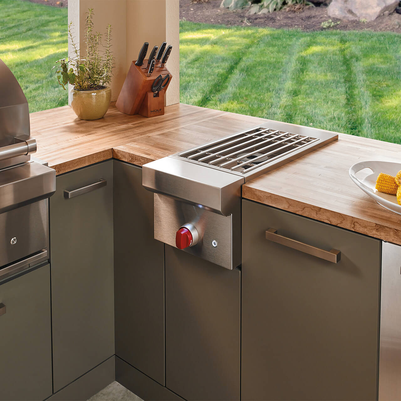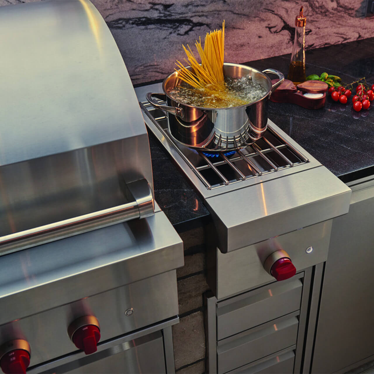 Na čerstvém vzduchu chutná všechno lépe. Grilování však s sebou přináší určité problémy. Kde ohřát grilovací omáčku nebo připravit přílohu, když je gril plný steaků nebo hamburgerů? Velmi jednoduché: hořákový modul Wolf 33 cm.