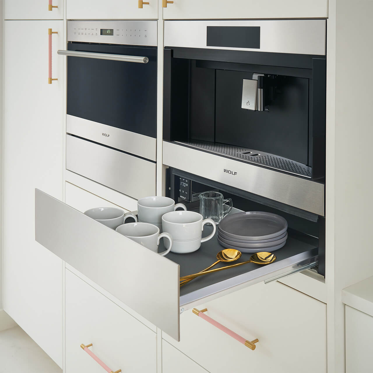 Káva je jednou z největších životních radostí – její vůně, chuť a samozřejmě dychtivé očekávání prvního ranního šálku. Porcelánový šálek s pokojovou teplotou však rychle odvádí teplo z kávového nápoje, takže není tak příjemný, jak by měl být. Doporučujeme vám, abyste spolu s kávovarem Wolf investovali do zásuvky na ohřívání šálků Wolf, která je dokonalým společníkem z hlediska funkčnosti i designu.