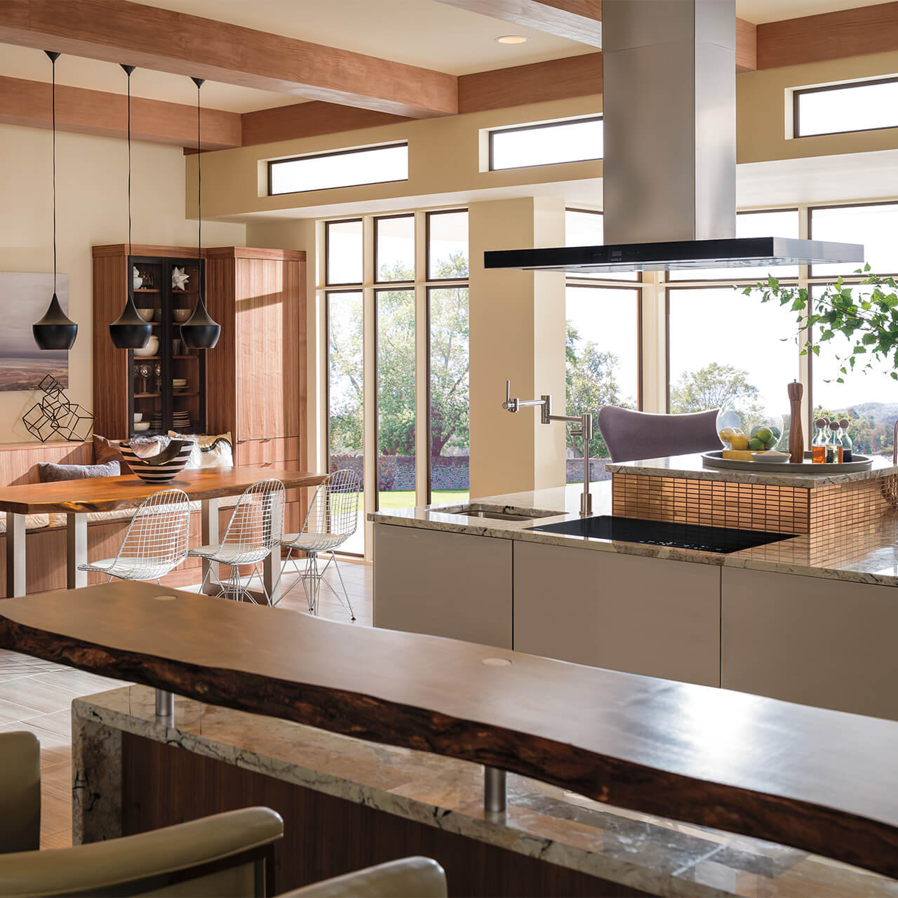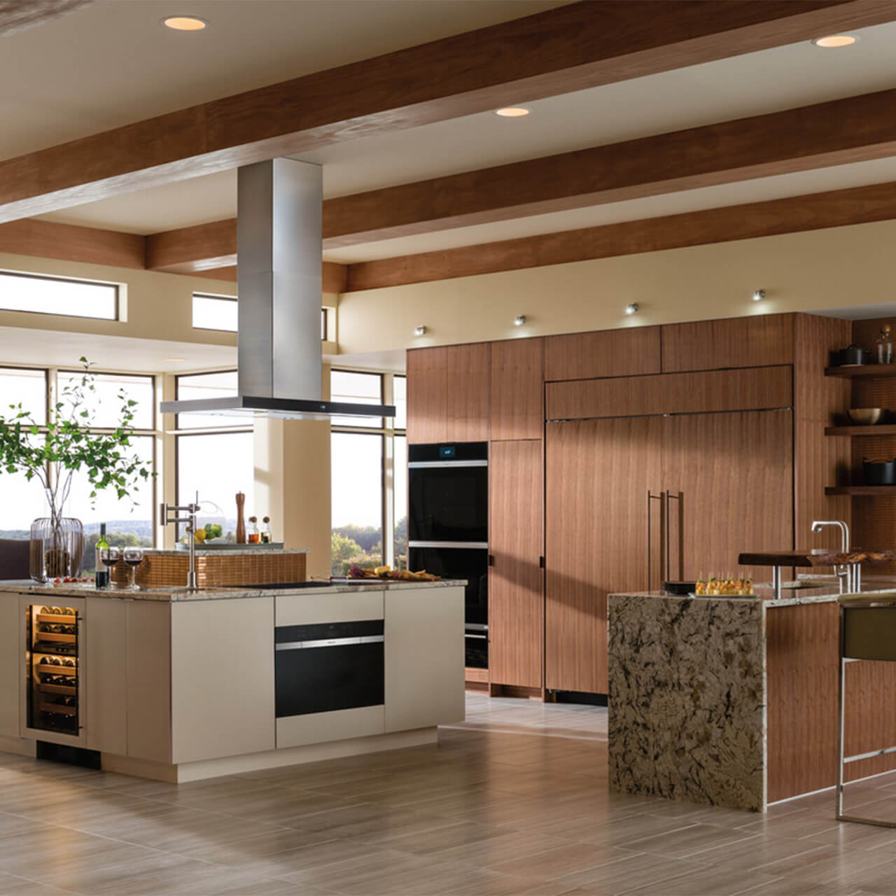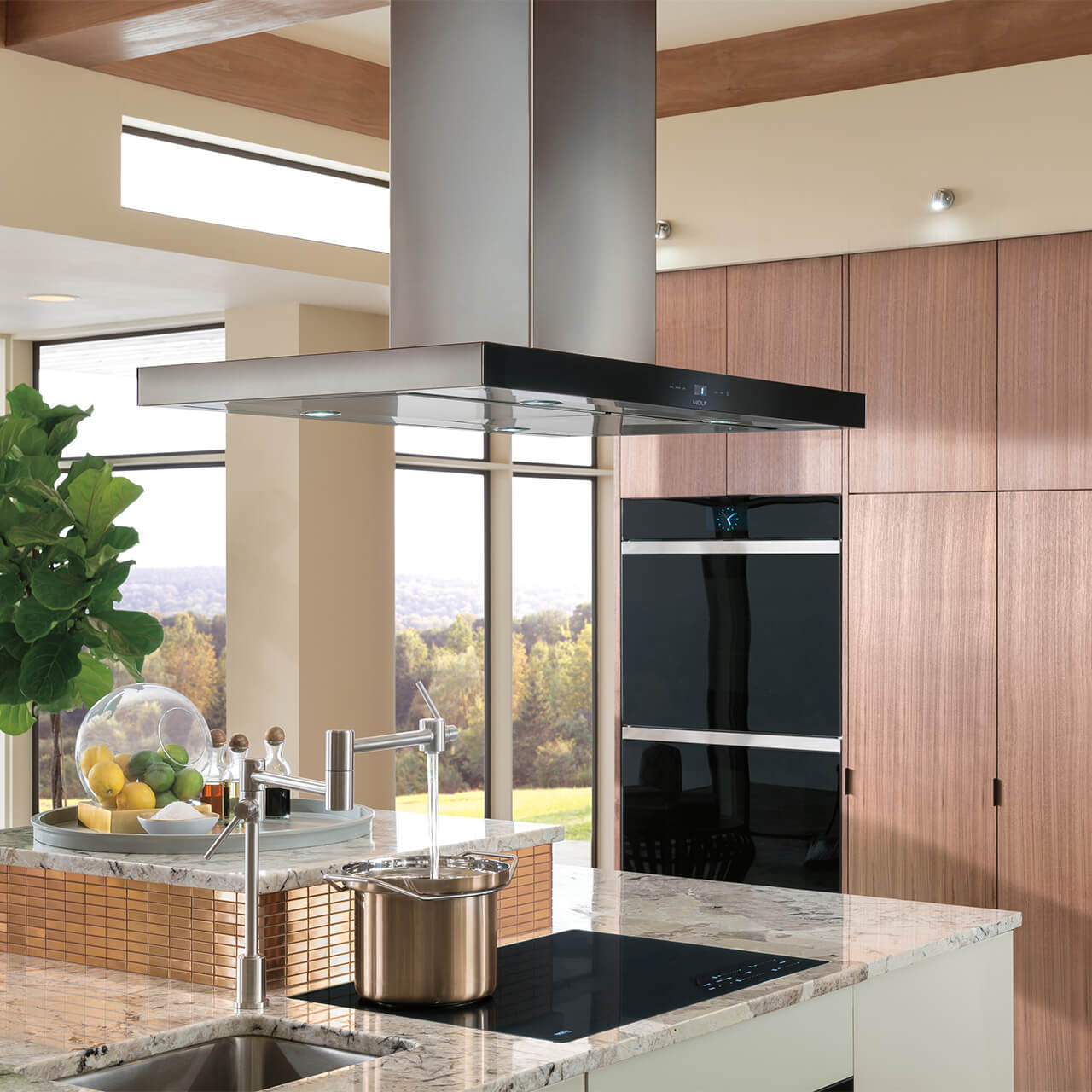 Ostrůvkový odsavač par Wolf z nerezové oceli působí dojmem, jako by byl vyřezán z jediného kusu silné nerezové oceli. Dalším doplňkem je černá povrchová úprava skla. Tento vynikající stupeň povrchové úpravy je jen jedním z příkladů péče, kterou společnost Wolf věnovala konstrukci tohoto odsavače. Vzhled dokonale ladí s ostatními luxusními kuchyňskými spotřebiči Wolf a Sub-Zero. Poskytuje vysoký výkon za všech okolností, ovládací prvky jsou umístěny vpředu, perfektní LED osvětlení a několik rychlostí výkonného ventilátoru Filtry lze mýt v myčce nádobí.