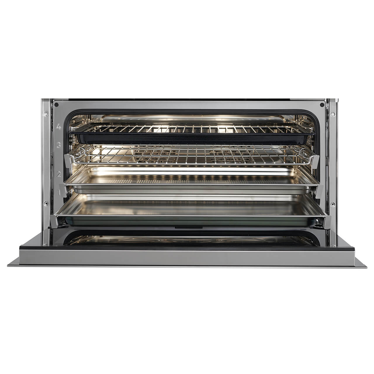 Jedná se možná o nejuniverzálnější troubu na světě. Kombinovaná horkovzdušná parní trouba vám usnadní přípravu pokrmů. Na dosah ruky máte sílu páry a konvekčního tepla a širokou škálu režimů vaření, které vám pomohou vytvořit jakýkoli pokrm – křupavé, zlatavé koláče, zapékané pokrmy nebo křehké steaky připravené metodou sous vide. Různé možnosti instalace a designu poskytují širokou škálu možností, zatímco nová estetická vylepšení zajišťují jednotný vzhled s ostatními troubami Wolf.