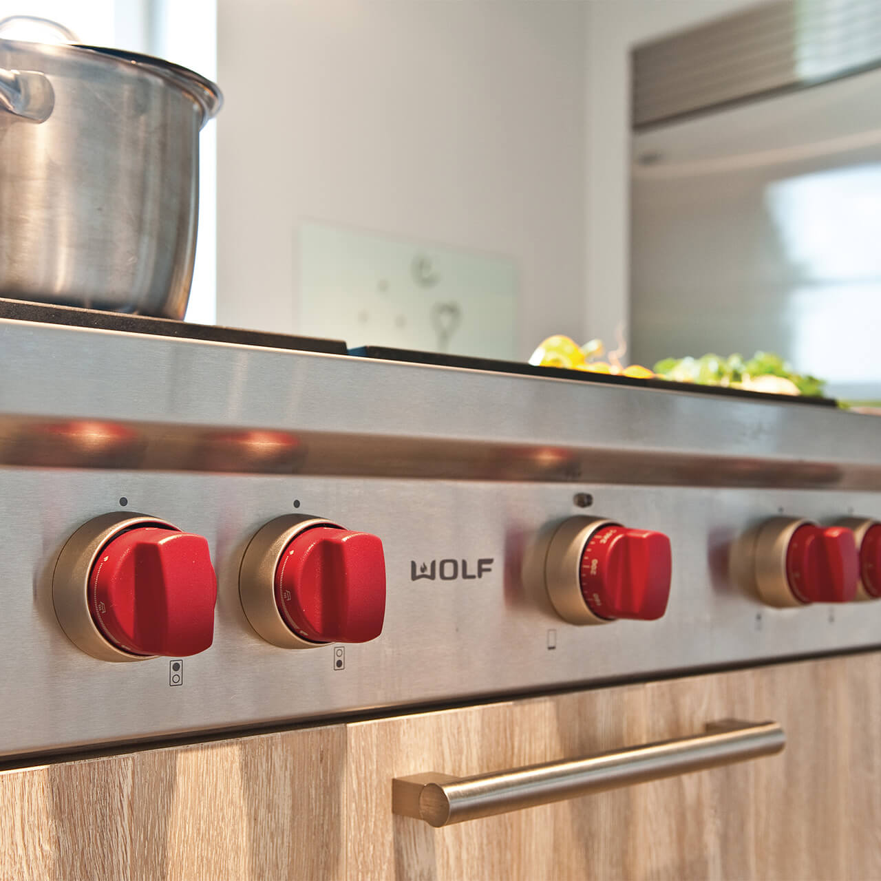 Skvělý spotřebič pro domácí kuchaře, který kombinuje výkon a ovládání dvojitých plynových hořáků Wolf s volitelnými moduly teppanyaki, plynovým grilem nebo WOK. Spotřebič dokonale doplňuje vestavné trouby a esteticky ladí s ostatními spotřebiči Sub-Zero a Wolf. Charakteristické ovládací knoflíky jsou k dispozici v různých barvách. K dispozici v šířkách 91 cm a 122 cm. Díky konstrukci z jednoho kusu nezerové oceli se snadno čistí.