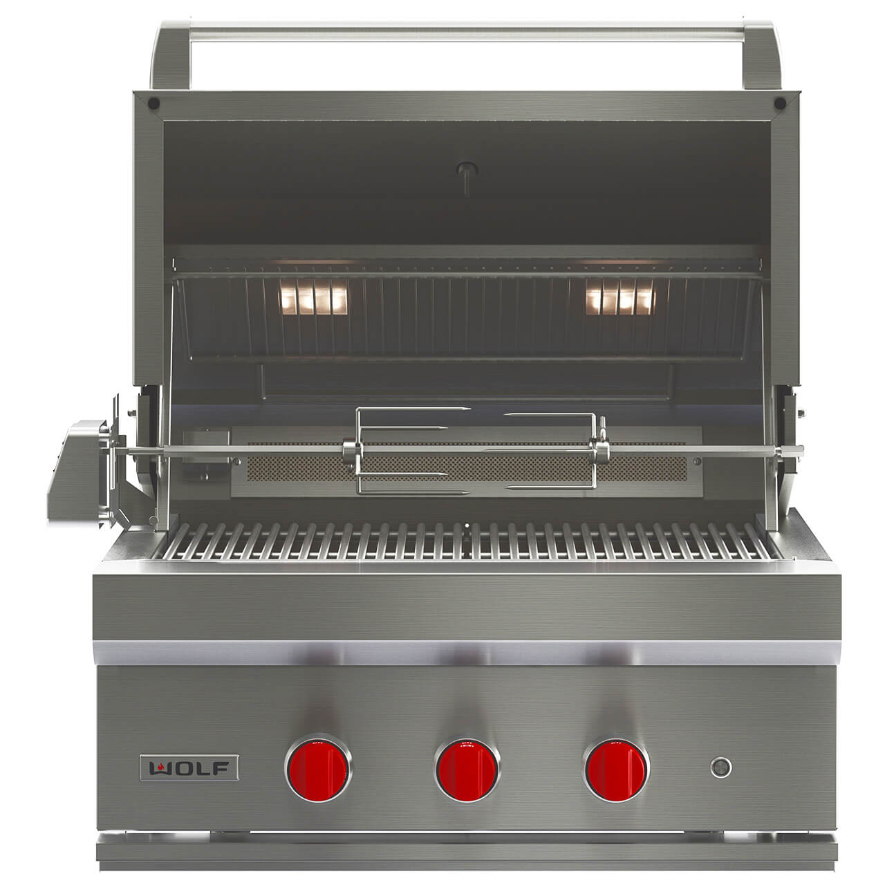 - Grilovací plochu osvětlují výkonná halogenová světla a ovládací knoflíky jsou podsvícené LED diodami – ideální pro noční grilování.