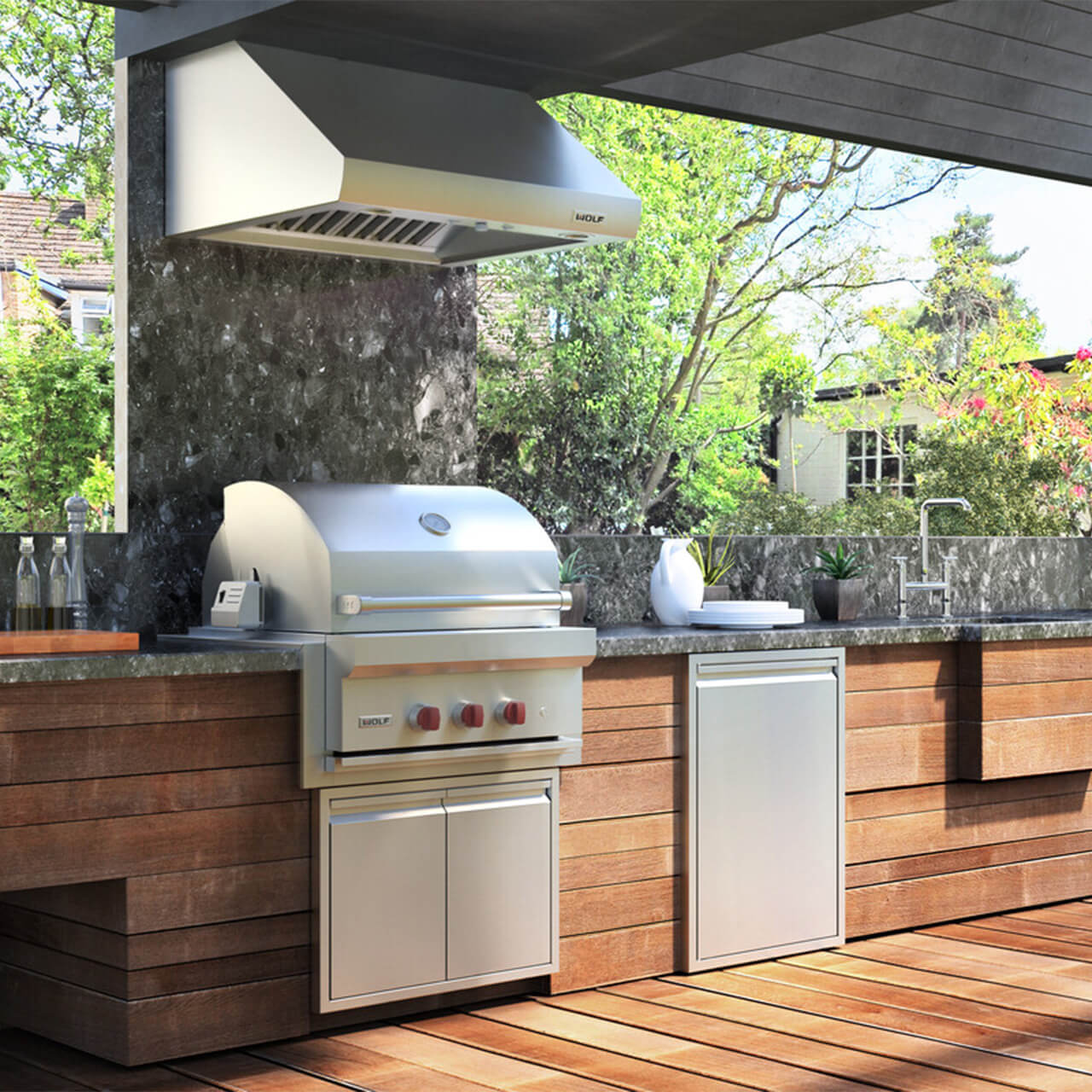 Společné stolování s rodinou a přáteli je jedním z největších životních potěšení. Venkovní gril Wolf poskytuje mistrovské ovládání a využívá přímého i sálavého tepla k dosažení správného rozsahu teplot a rovnoměrného rozložení tepla, což je klíčem k dokonalému grilování. Uzavřená udírna může zvýraznit kouřovou chuť grilovaných potravin. Pro grilování choulostivějších pokrmů, jako je zelenina a ryby, přidejte příslušenství v podobě desky teppanyaki.